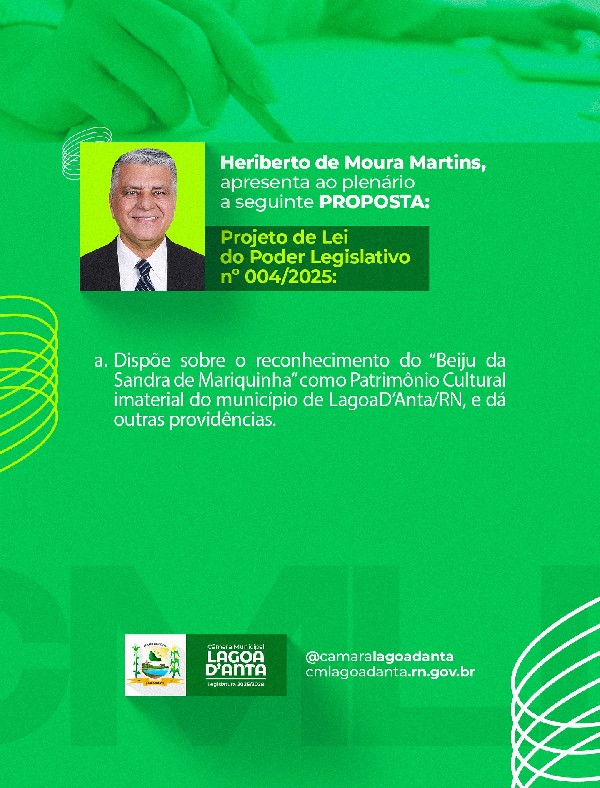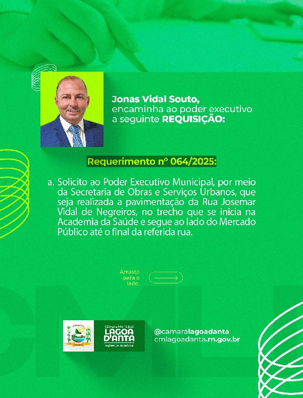 Confira o requerimento e o projeto de lei de autoria do poder legislativo, na pauta da sessão de hoje nos cards acima!