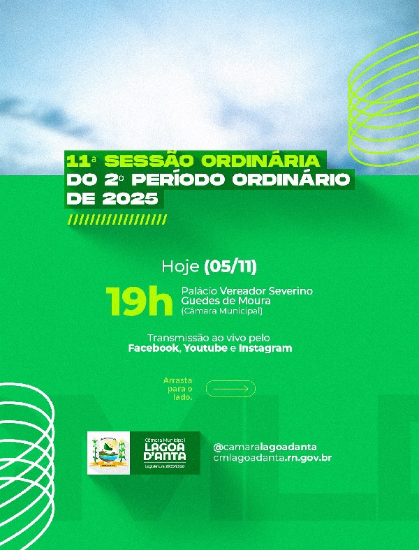 Acompanhe ao vivo pelo Facebook, YouTube e Instagram. Participe e fique por dentro das ações do nosso Legislativo!