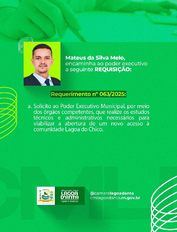 Confira o requerimento do vereador @gmateusmelo na pauta da sessão de hoje nos cards acima!